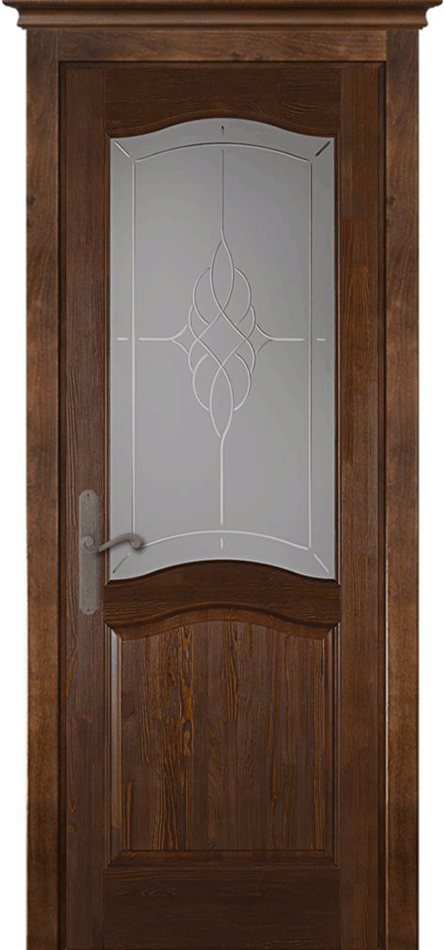 Белорусская дверь "Лео" (Франческо), браш массив сосны, античный орех, остекленная.