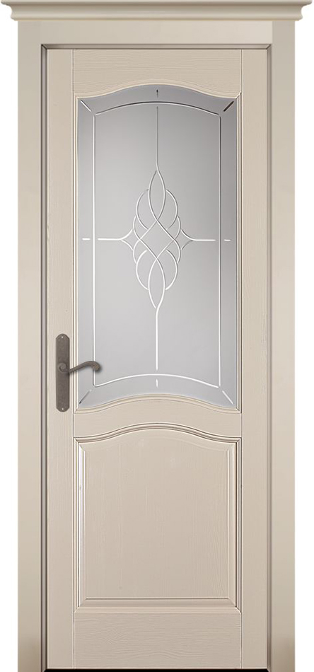 Белорусская дверь ЛЕО, браш массив сосны, эмаль крем,остекленная.