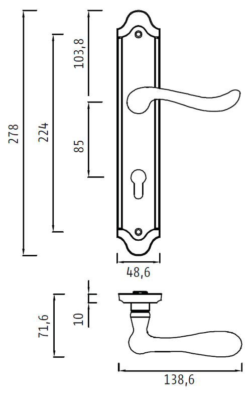 Ручки Archie ACANTO для входных и межкомнатных дверей производство Archie ИспанияЦвет покрытия Archie ACANTO: Матовое золотоТип ручек: Раздельные, на длинной планкеМатериал покрытия ручек Archie ACANTO: гальваникаКомплектация: две ручки (левая и правая), комплект установочных креплений