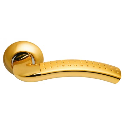 Ручки Archie S010 59IIP для входных и межкомнатных дверей производство Archie ИспанияЦвет покрытия Archie S010 59IIP: Матовое золотоТип ручек: Раздельные, на круглой розеткеМатериал покрытия ручек Archie S010 59IIP: гальваникаКомплектация: две ручки (левая и правая), комплект установочных креплений