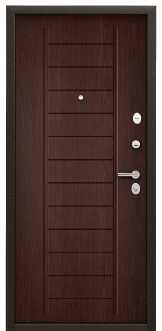 Полотно толщиной 74 мм, усиленное металлическими элементами, холоднокатаная сталь 1,2 мм в полотне двери. ,Замковая система класса «стандарт+»