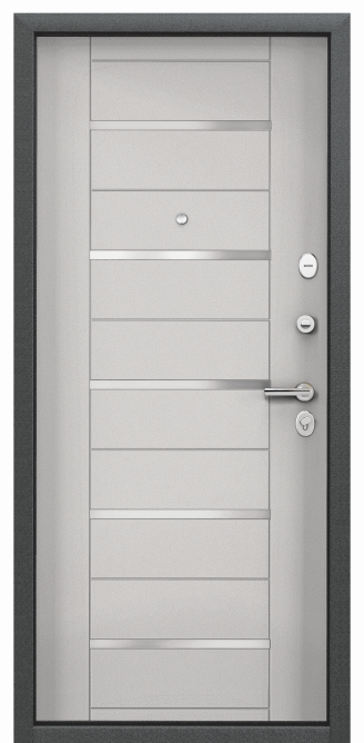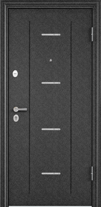 Полотно толщиной 74 мм, усиленное металлическими элементами, холоднокатаная сталь 1,2 мм в полотне двери. ,Замковая система класса «стандарт+»