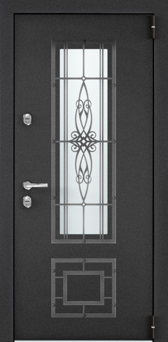 Терморазрыв в полотне и коробе двери, два слоя пенополистирола в полотне и минеральная плита в ребрах жесткости, три контура резиновых уплотнителей и отсутствие мостиков холода обеспечивают теплую и комфортную атмосферу дома. ,Атмосферостойкое покрытие