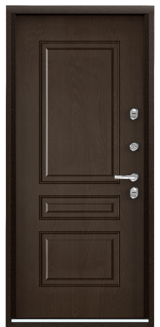Терморазрыв в полотне и коробе двери, два слоя пенополистирола в полотне и минеральная плита в ребрах жесткости, три контура резиновых уплотнителей и отсутствие мостиков холода обеспечивают теплую и комфортную атмосферу дома. ,Атмосферостойкое покрытие